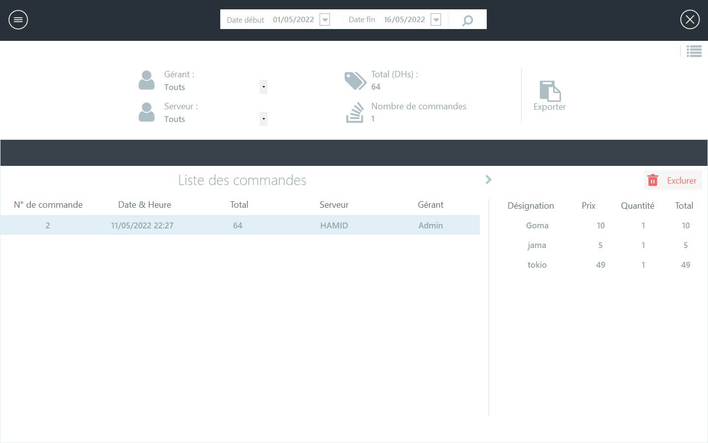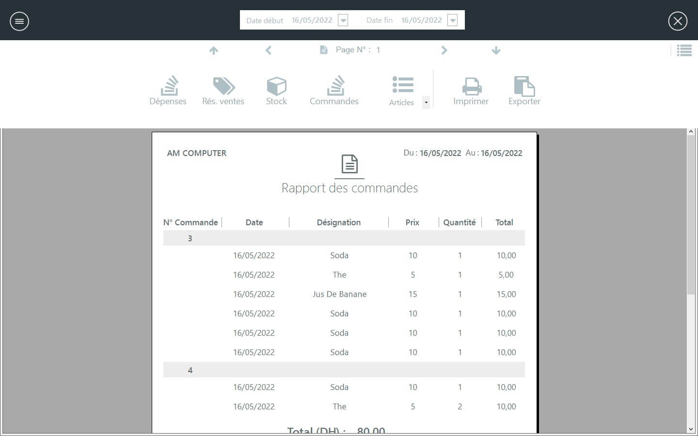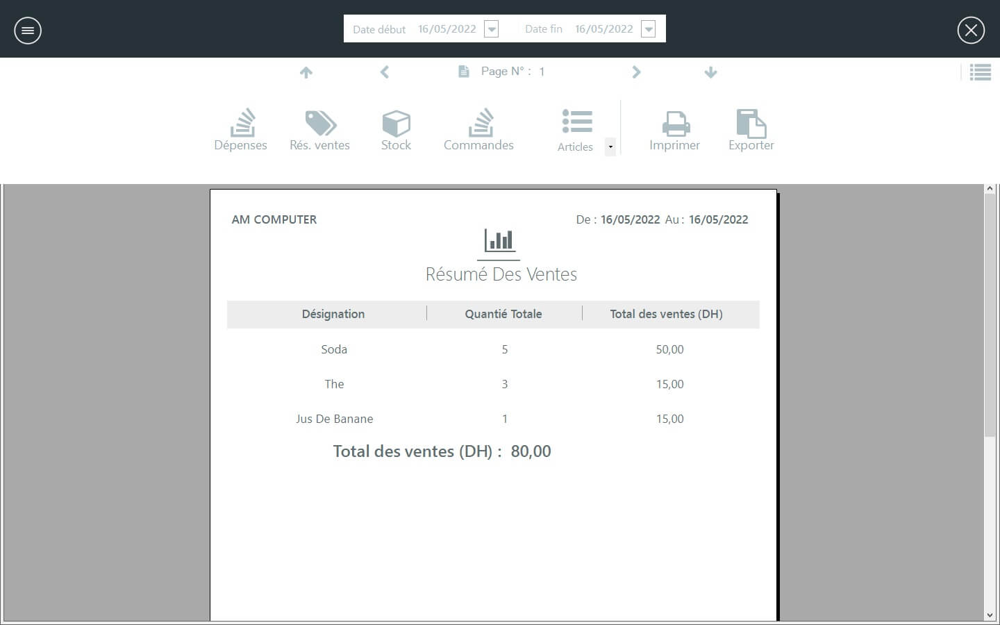 Possibilité d’exporter la liste des ventes en fichier PDF.